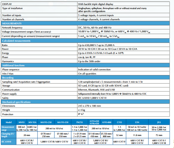 法国CA PEL105 在线电能质量记录仪技术参数: