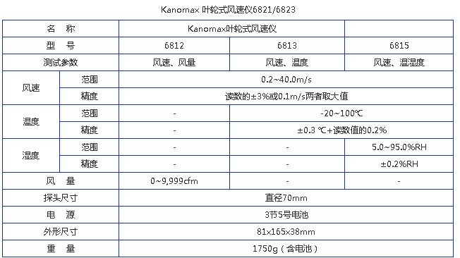 加野 6812/6813/6815 叶轮式风速仪技术参数: