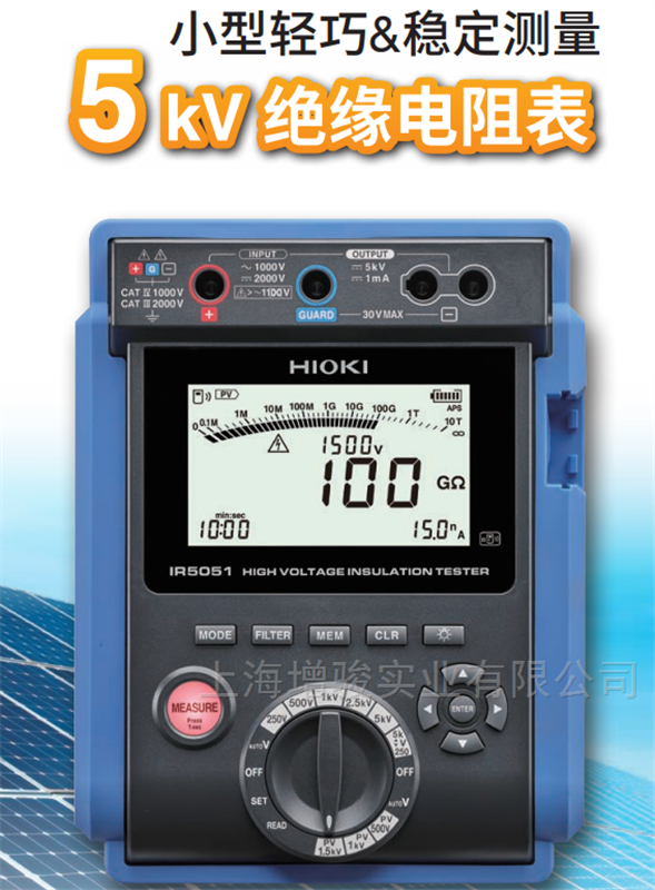 日置IR3455-30高压绝缘电阻计用于测量高压设备(变压器、线缆、马达等)的绝缘电阻,试验电压范围广250V~5kV,测量范围广,最大10TΩ。最小25V步进精确设置。此外最大PI(成极指数),DAR(诱电吸收比)的自动计算/显示和测量步进电压,温度补偿,温度测量,泄露电流显示等绝缘诊断所必须的功能全面。