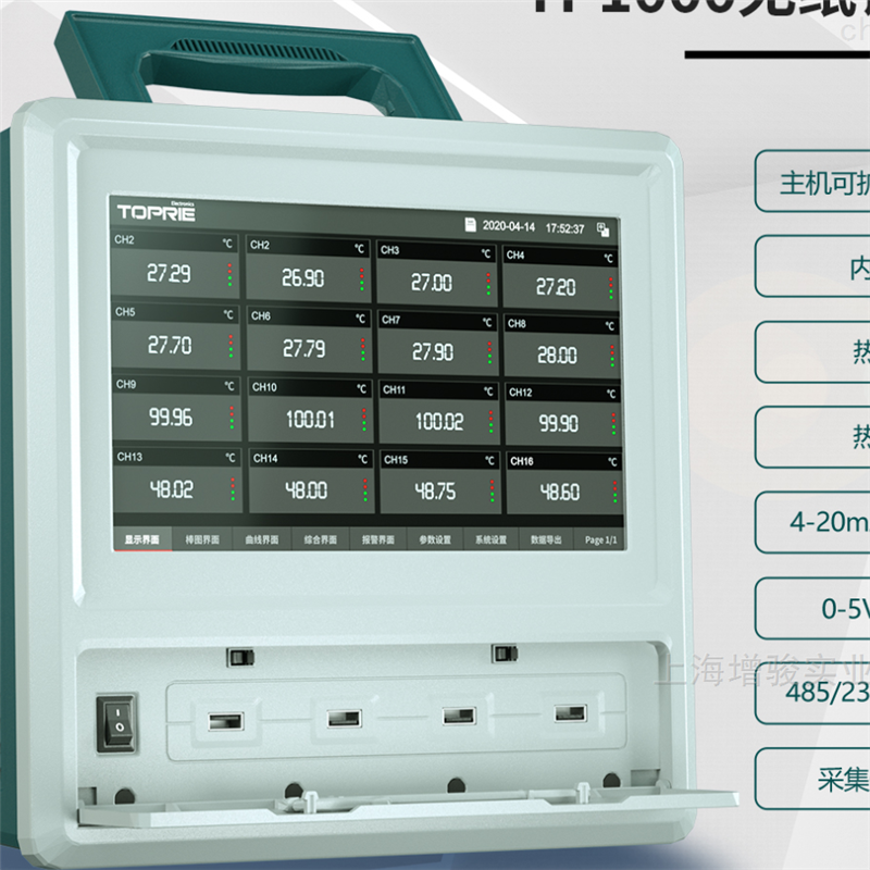 TP1000无纸记录仪支持温度、湿度、电流、电压、压力、液位、流量、位移等同时测试,采用简约外观设计,轻便易用,可无线远传至电脑IE&手机微信监控